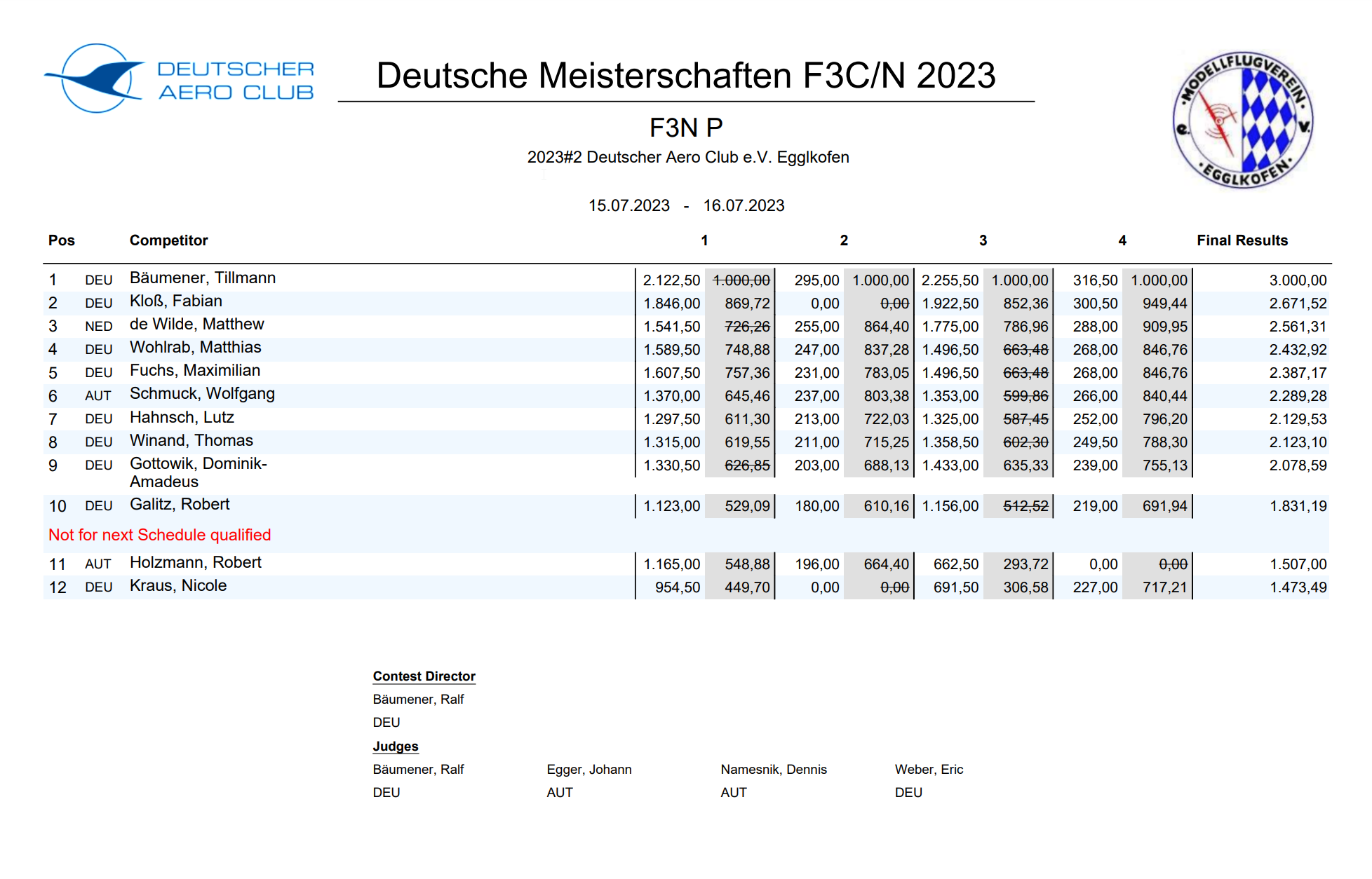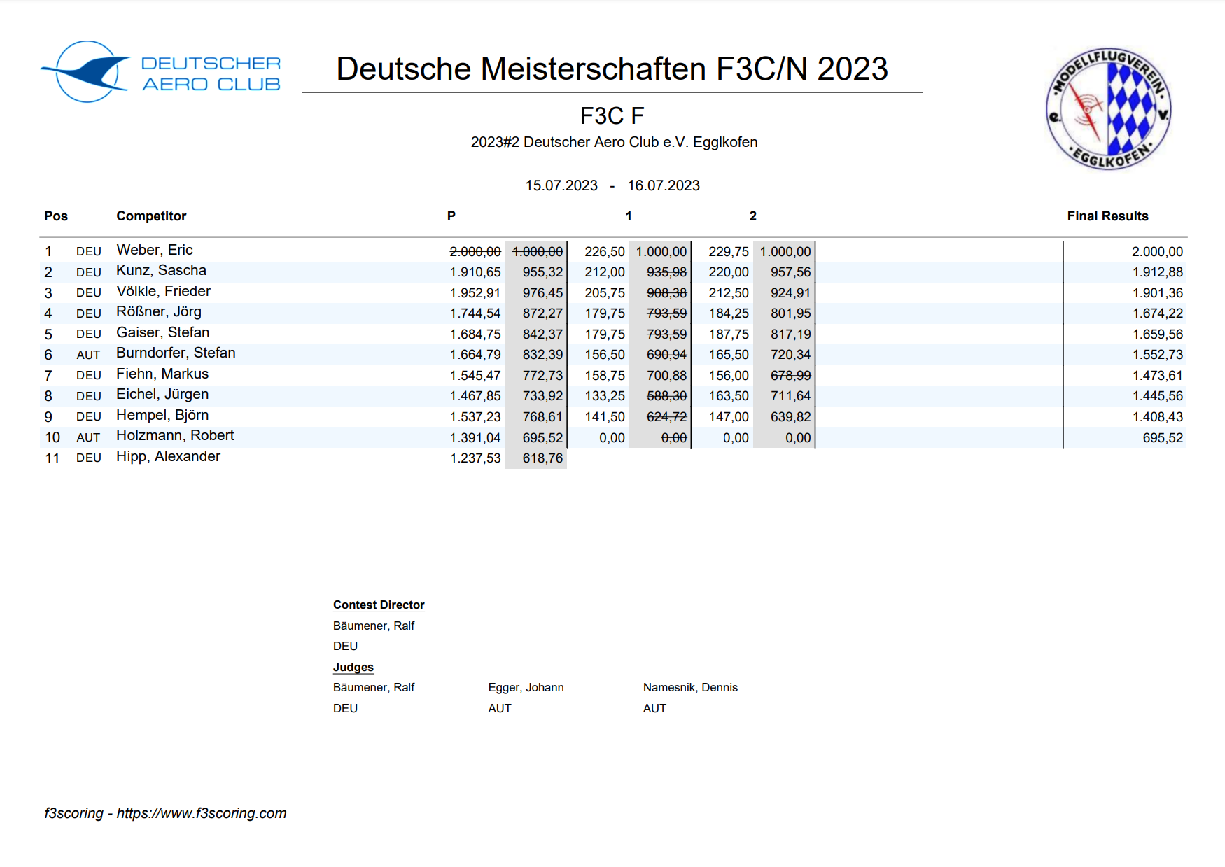 Platzierungen der Deutsche Meisterschaften 2023 in den Klassen F3C, F3N sowie F3C-Sport und F3N-Sport.