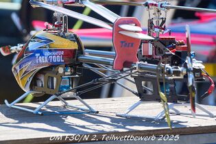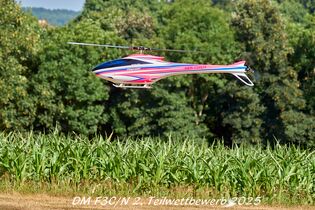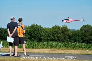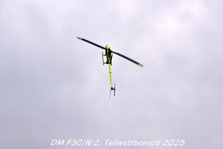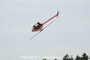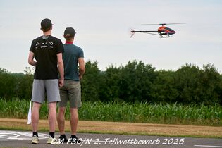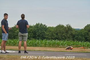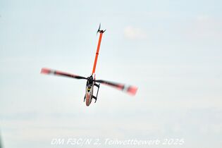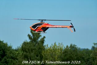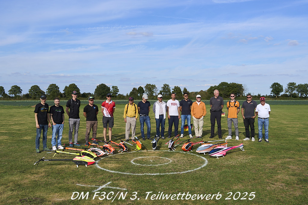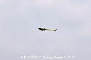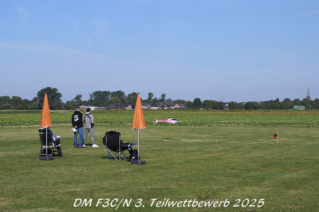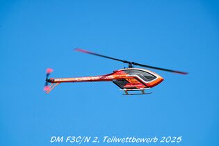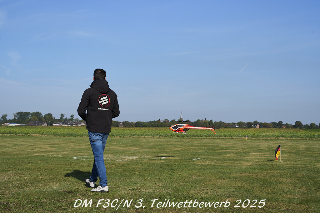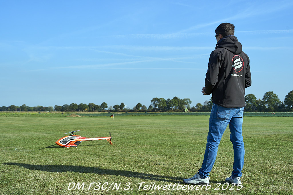 Beim 3. Teilwettbewerb der Deutschen Meisterschaften in Kleinenbroich traten am 6. und 7. September 2025 die besten Modellhubschrauberpilot:innen in den Klassen F3C und F3N gegeneinander an. Das Training am Freitag war gut besucht und ließ ausreichend Zeit für Feinjustierungen. Am Samstag startete der Wettbewerb um 8:30 Uhr mit dem Pilotenbriefing. Bei sonnigem Wetter fanden die Vorrunden im Wechselmodus statt, Sonntag ergänzte eine leichte Brise die Bedingungen.