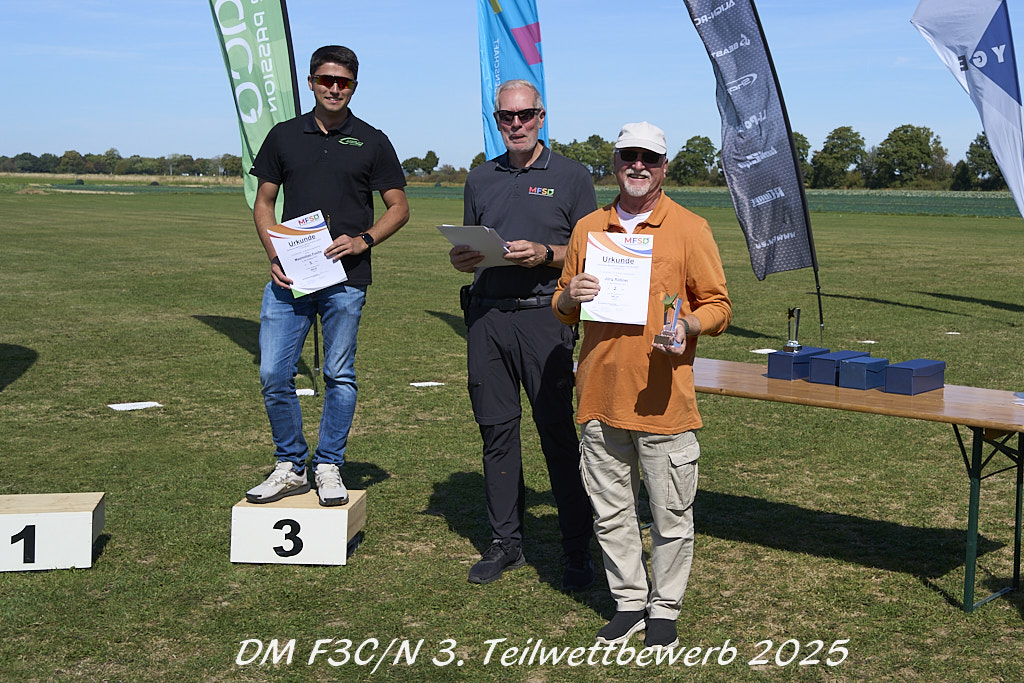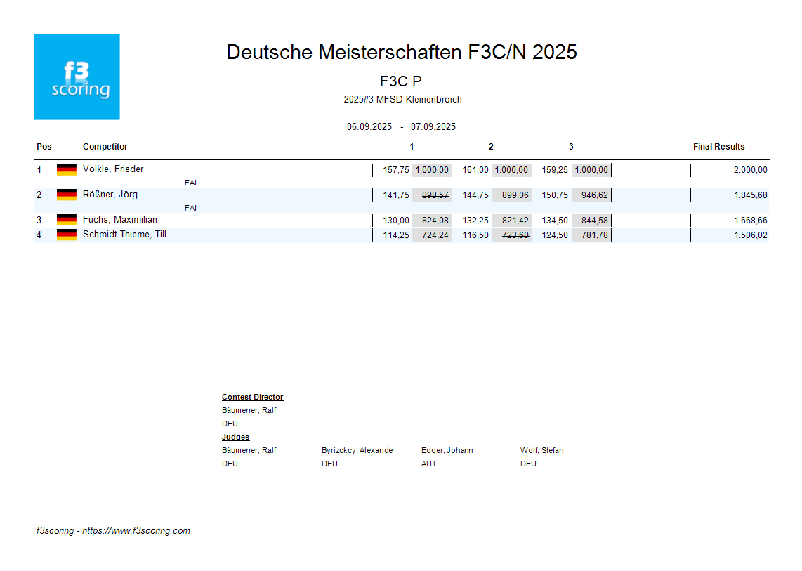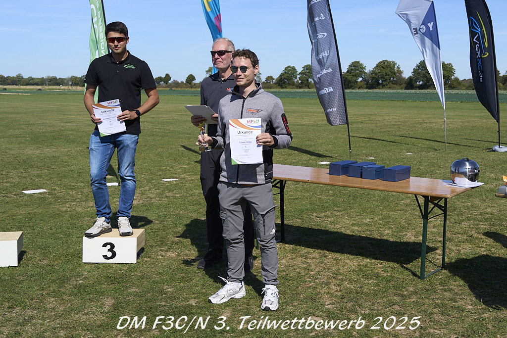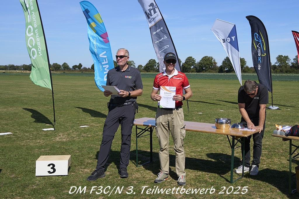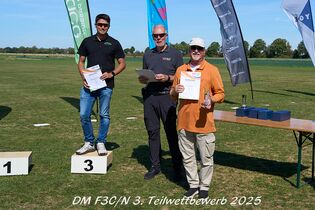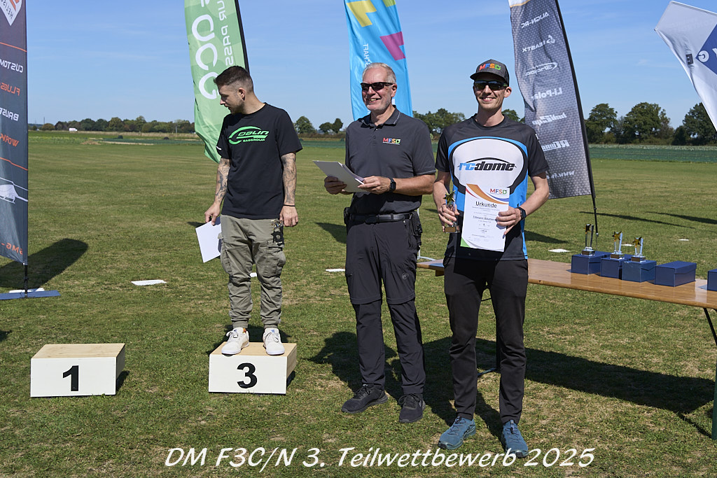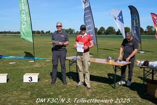 Die Titel der Deutschen Meister 2025 wurden nach dem Abschluss der drei Wettbewerbe in den Klassen F3C und F3N vergeben. Hier sind die Platzierungen mit den entsprechend normalisierten Punktwerten, die das Gesamtbild der Saison widerspiegeln.