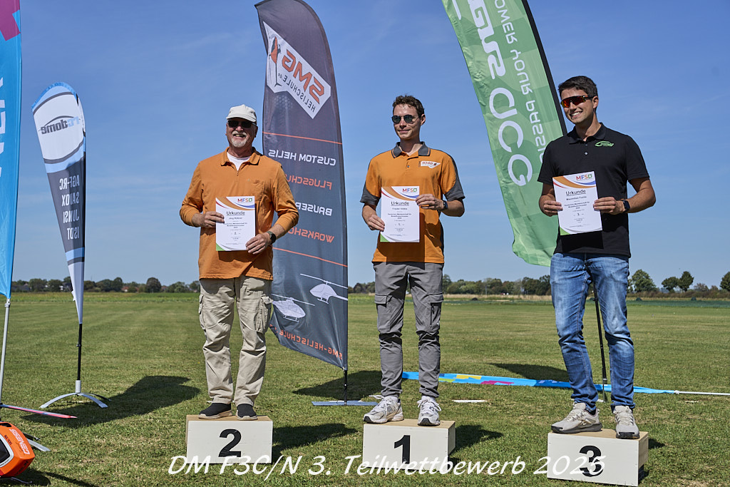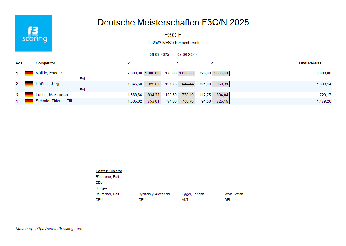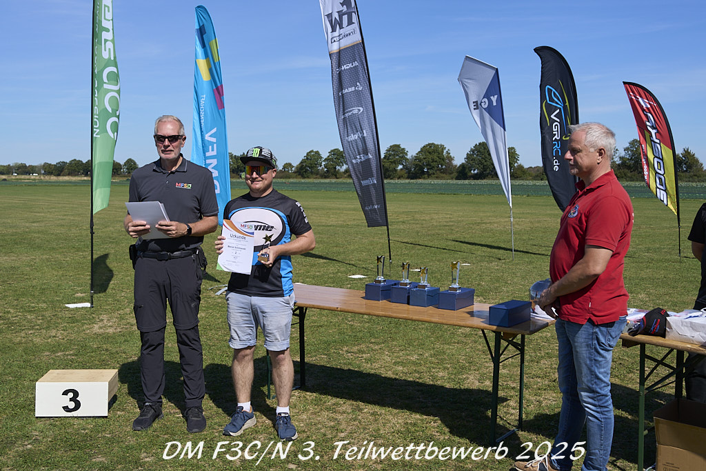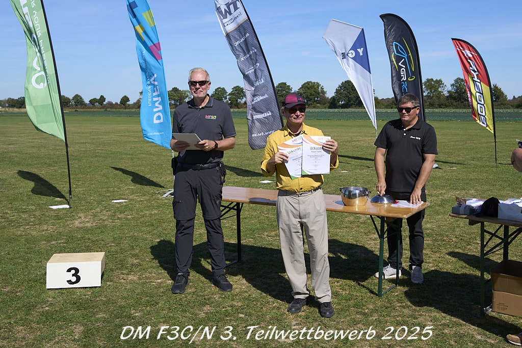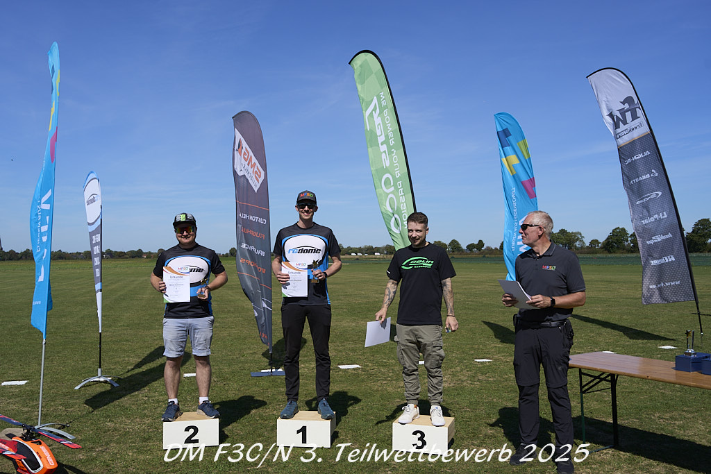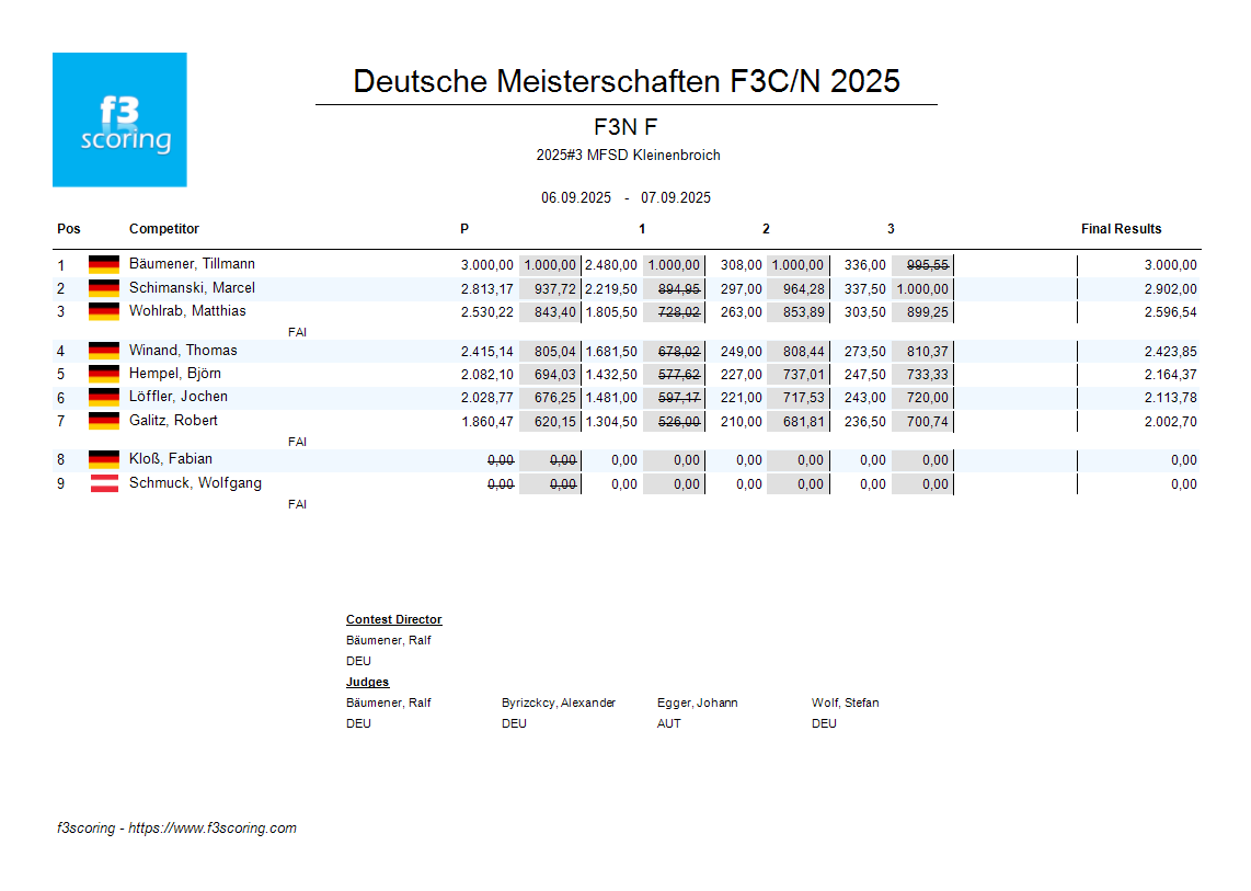 Die Titel der Deutschen Meister 2025 wurden nach dem Abschluss der drei Wettbewerbe in den Klassen F3C und F3N vergeben. Hier sind die Platzierungen mit den entsprechend normalisierten Punktwerten, die das Gesamtbild der Saison widerspiegeln.