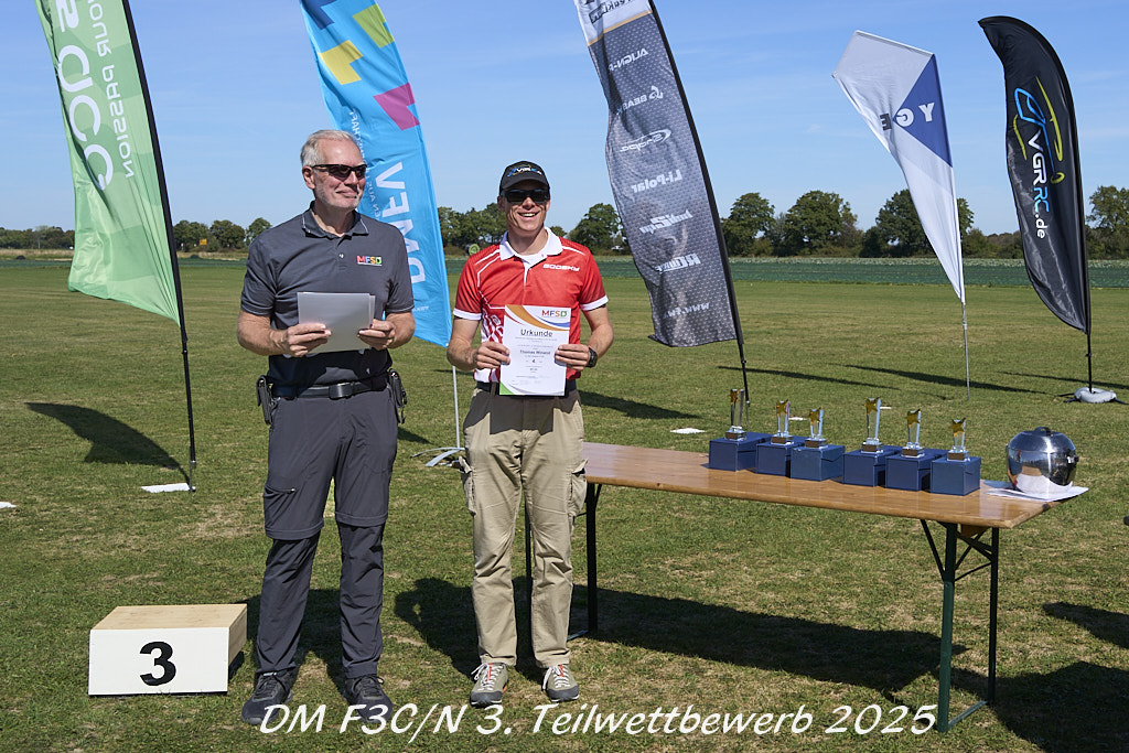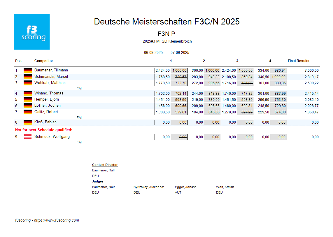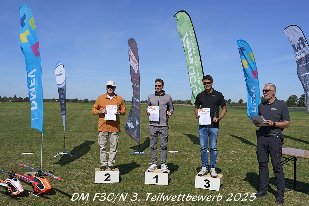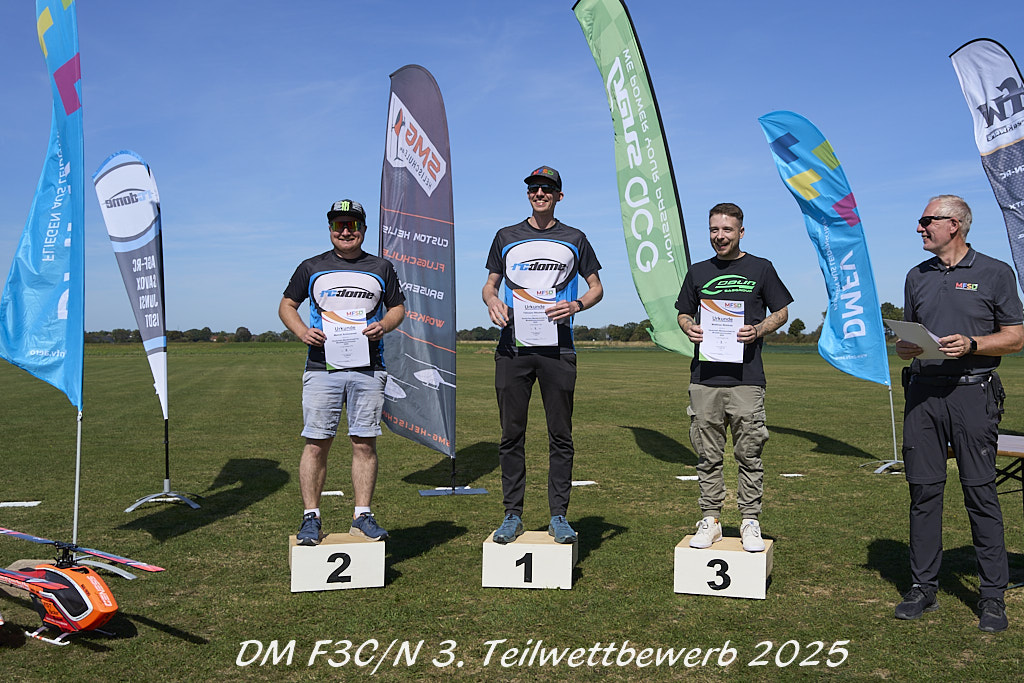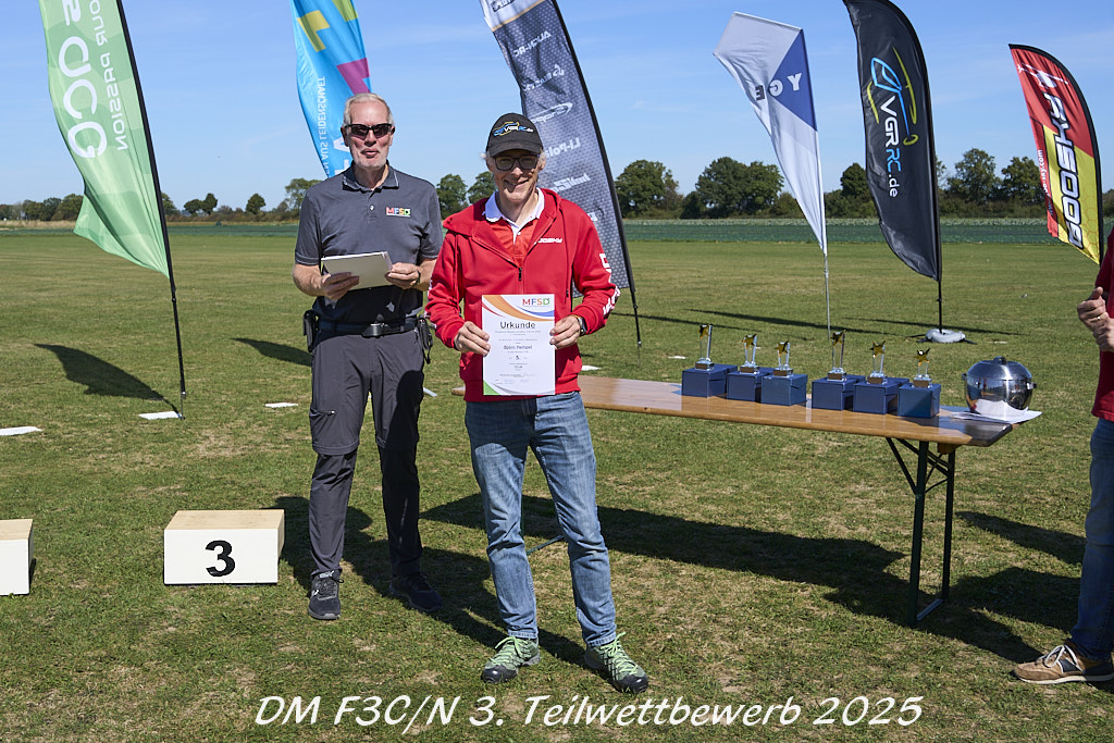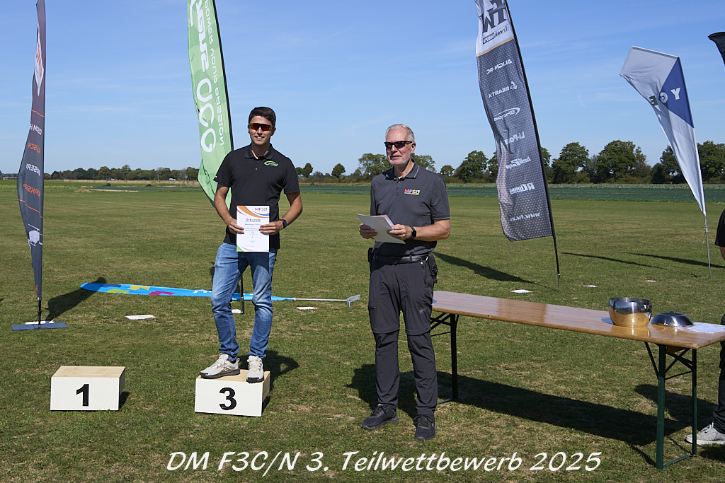 Die Titel der Deutschen Meister 2025 wurden nach dem Abschluss der drei Wettbewerbe in den Klassen F3C und F3N vergeben. Hier sind die Platzierungen mit den entsprechend normalisierten Punktwerten, die das Gesamtbild der Saison widerspiegeln.