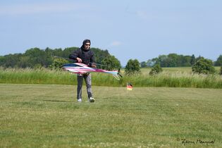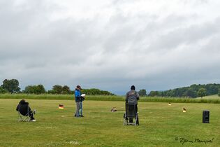 Pünktlich um 9:00 Uhr begann der Wettbewerbstag mit dem Pilotenbriefing. Anschließend wurden die Durchgänge der Klassen F3C, F3N und F3C-Sport im Wechsel geflogen. Aufgrund der überschaubaren Teilnehmerzahl – 5 Piloten in F3C, 6 in F3N und ein Debütant in F3C-Sport – konnte der Zeitplan zügig eingehalten werden. Da für Sonntag schlechtes Wetter vorhergesagt war, wurde jeweils ein Finalflug vorgezogen.
