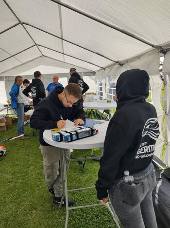 Freitag, 16.08.2024: Mal wieder Regen – viel Regen. Es sollte zuerst das 2. F3C Semifinale geflogen werden, der Start wurde aber von 8:30 Uhr auf 10:00 Uhr verschoben. Jeder schaute in „seine“ Wetter-App und jeder hatte eine andere Prognose. Jedenfalls regnete es um 10:00 Uhr immer noch, sodass wir weiter ausharren mussten – neue Startzeit 12:00 Uhr und als es endlich losging, konnte der Wettbewerb nicht ohne weitere Unterbrechungen durchgeführt werden, da es immer wieder anfing zu regnen. Teilweise wurde im Regen geflogen, obwohl in diesem Fall jeder Pilot für sich entscheiden kann, ob er fliegt oder nicht. Auch kann ein bereits begonnener Flug bei einsetzendem Regen in eigenem Ermessen abgebrochen und darf komplett wiederholt werden. Egal wie, der Durchgang konnte regulär beendet werden und die ersten 14 Piloten hatten sich für das Finale qualifiziert. Eric Weber, Sascha Kunz und Frieder Völkle waren dabei!